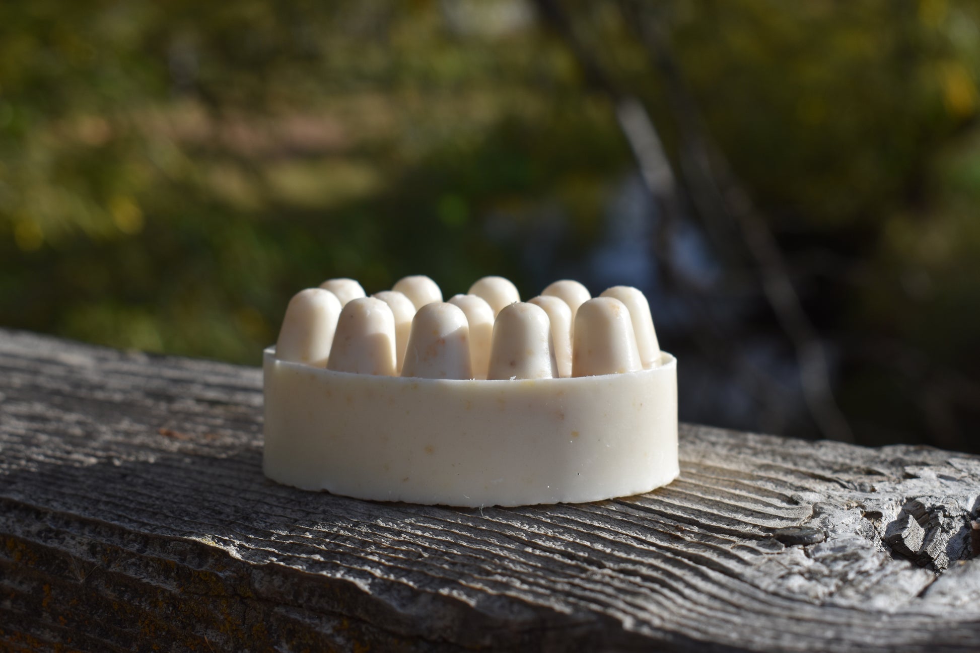 Wildflower Dust is a soft, earthy bloom of a bar — crafted with an oatmeal soap base, enriched with skin-loving oils, and dusted in fragrant notes of citrus and herb. Nectarine and bergamot lift the senses, while chamomile and sage settle into something grounded, sweet, and quietly wild. With a creamy lather and light exfoliation, this bar offers a gentle cleanse that feels both fresh and nostalgic.